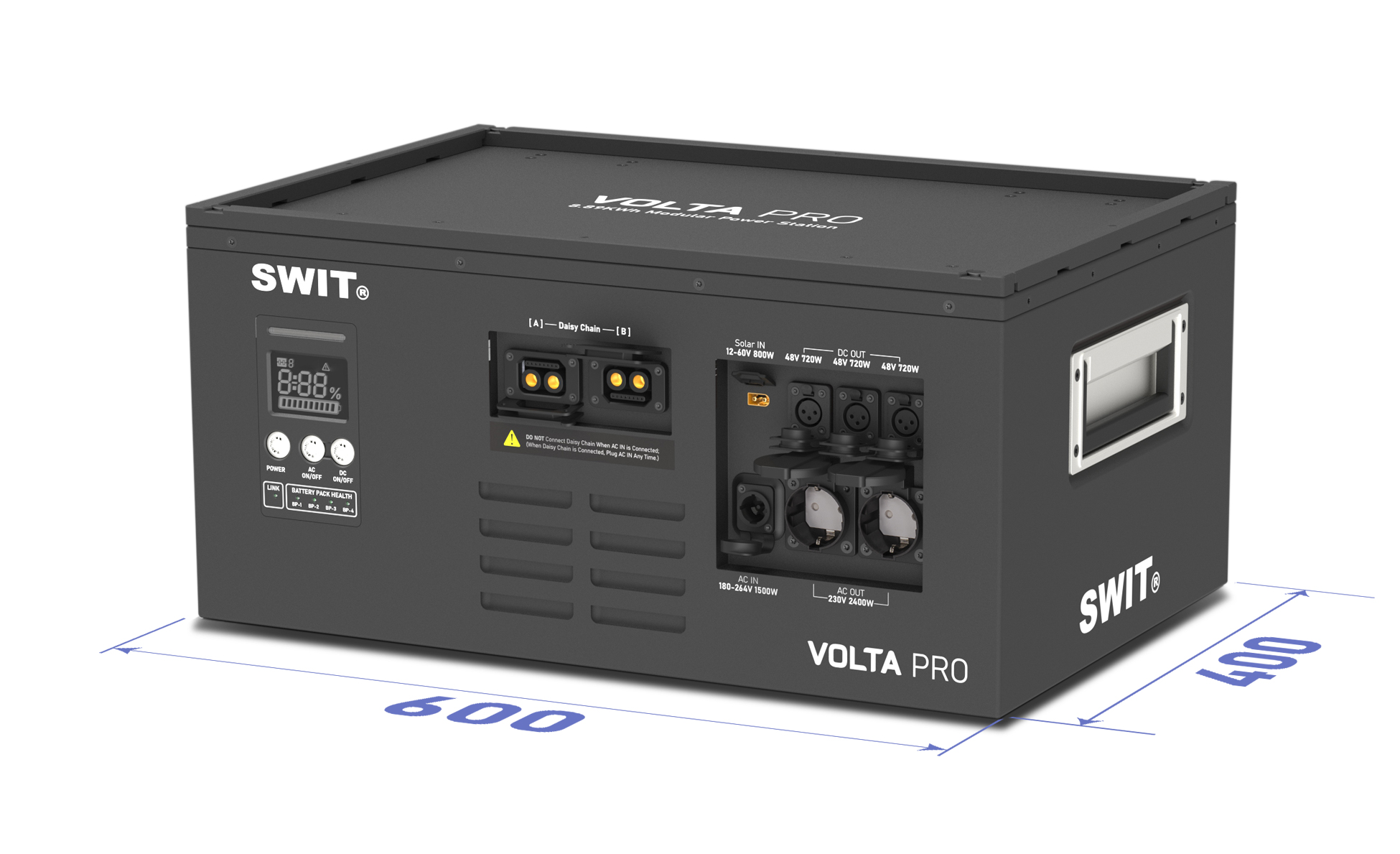 Le VOLTA PRO se distingue par sa conception modulaire interne : il abrite quatre packs de batteries de 2222,5 Wh chacun. Cette architecture permet non seulement une maintenance facilitée, mais aussi une extension de capacité par "Daisy Chain" (chaînage) avec support du hot-swap (remplacement à chaud), garantissant une alimentation ininterrompue sur le plateau.