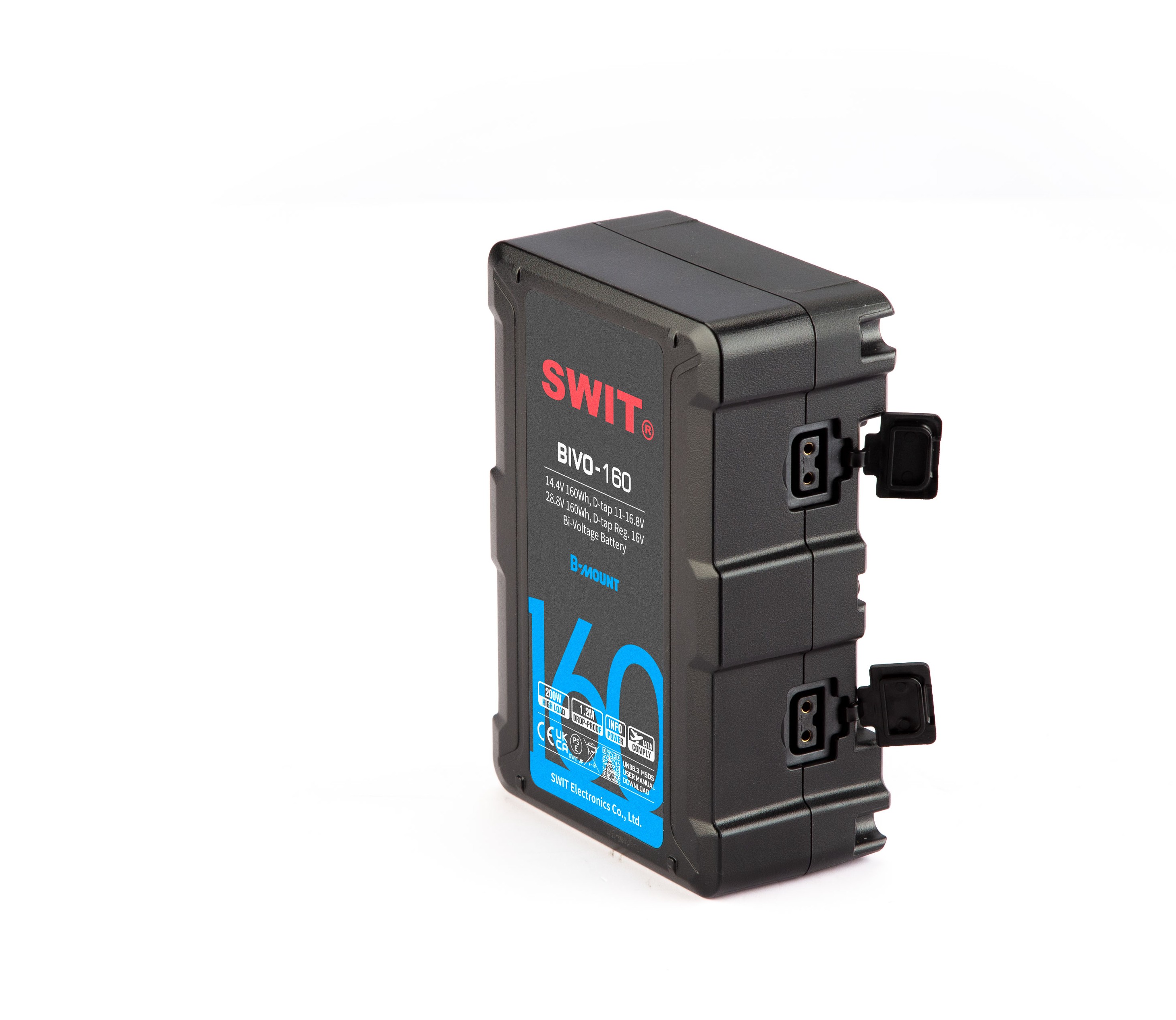 La BIVO-160 est une batterie bi-voltage intelligente (14,4V / 28,8V) de 160Wh, conçue pour les écosystèmes cinématographiques modernes. Sa capacité de charge constante de 200W (16A sous 14,4V) lui permet d'alimenter les configurations les plus lourdes, incluant la ARRI Alexa 35 et ses accessoires périphériques. Elle se distingue par sa capacité de recharge ultra-rapide (100W), permettant un cycle de rotation très court sur le plateau.