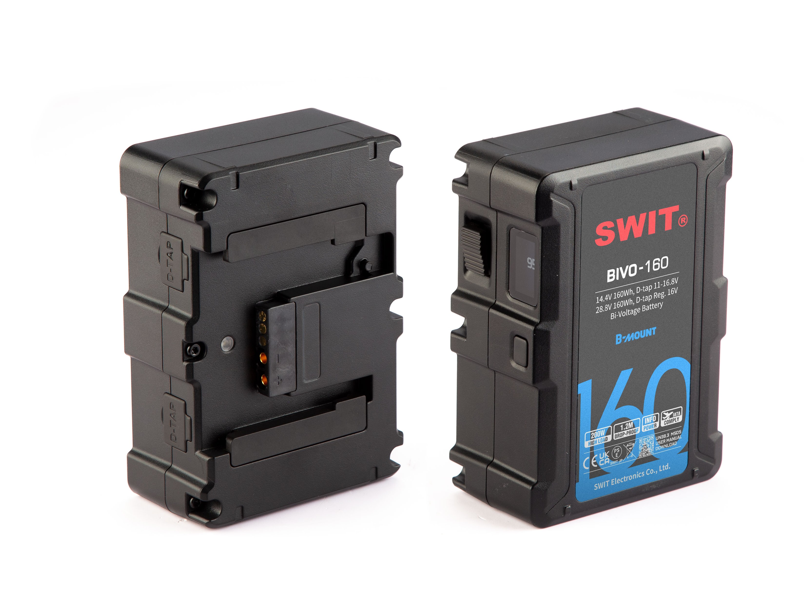 La BIVO-160 est une batterie bi-voltage intelligente (14,4V / 28,8V) de 160Wh, conçue pour les écosystèmes cinématographiques modernes. Sa capacité de charge constante de 200W (16A sous 14,4V) lui permet d'alimenter les configurations les plus lourdes, incluant la ARRI Alexa 35 et ses accessoires périphériques. Elle se distingue par sa capacité de recharge ultra-rapide (100W), permettant un cycle de rotation très court sur le plateau.
