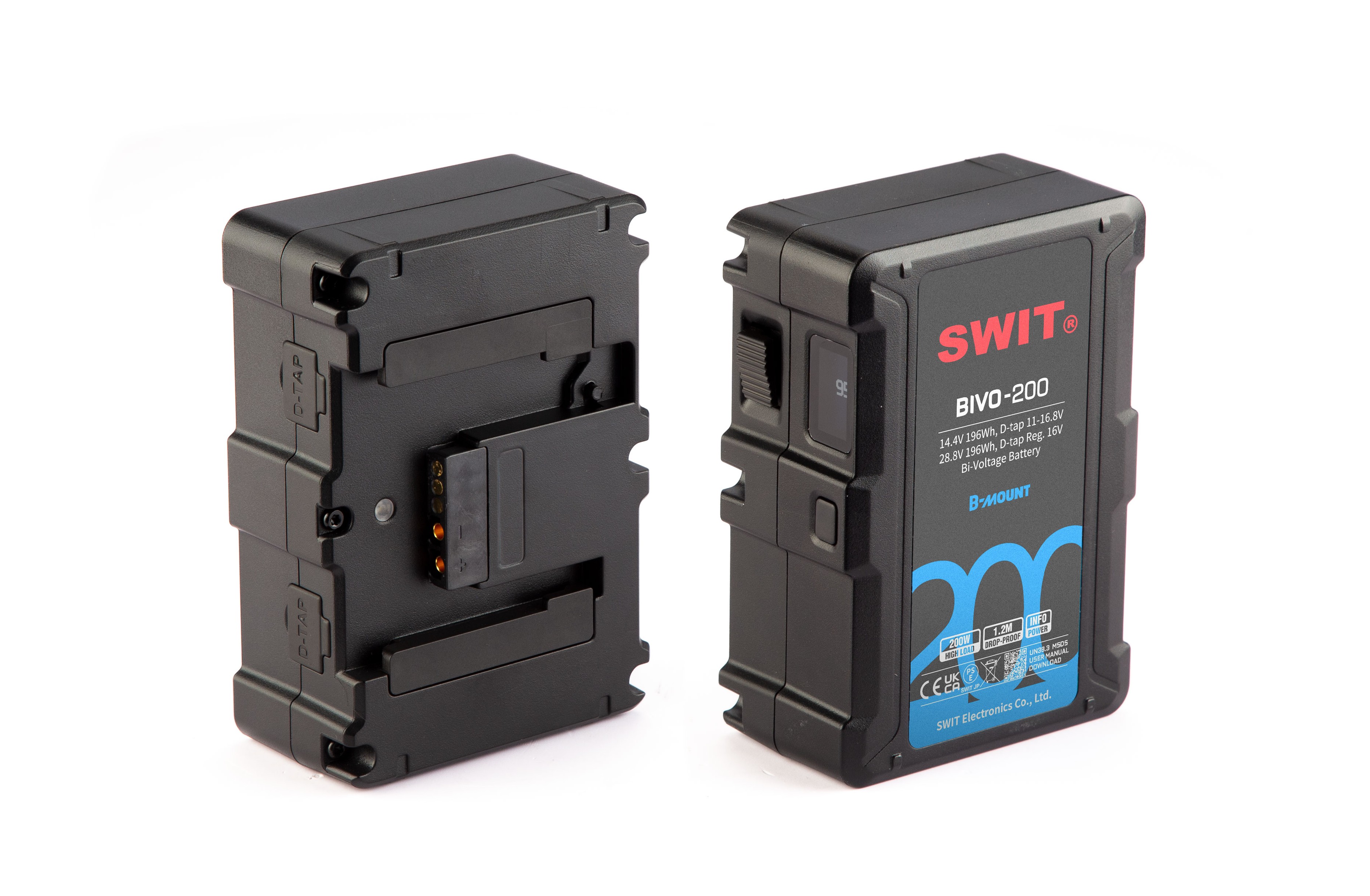 La BIVO-200 est une batterie bi-voltage (14,4V / 28,8V) de 196Wh, conçue pour offrir une autonomie prolongée aux caméras de cinéma et projecteurs LED de nouvelle génération. Capable de supporter une charge constante de 200W, elle est l'alliée idéale pour les tournages intensifs où les changements de batterie doivent être limités. Elle intègre le système de reconnaissance automatique du voltage propre au standard B-mount, garantissant une sécurité totale pour votre parc de matériel.