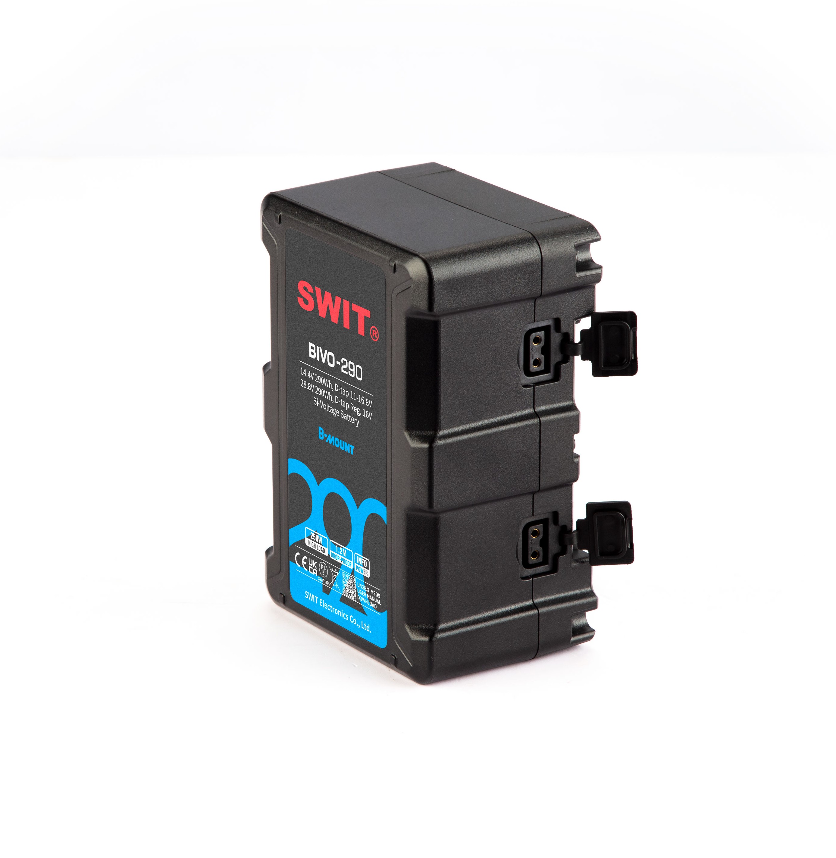 La BIVO-290 est une batterie bi-voltage (14,4V / 28,8V) affichant une capacité massive de 290Wh. Véritable centrale électrique portable, elle est capable de fournir une charge constante de 250W (20A sous 14,4V). Cette performance la rend indispensable pour alimenter non seulement les caméras de cinéma haut de gamme comme la ARRI Alexa 35, mais aussi des projecteurs LED de forte puissance sur batterie.