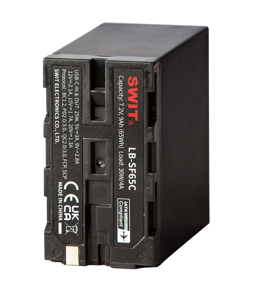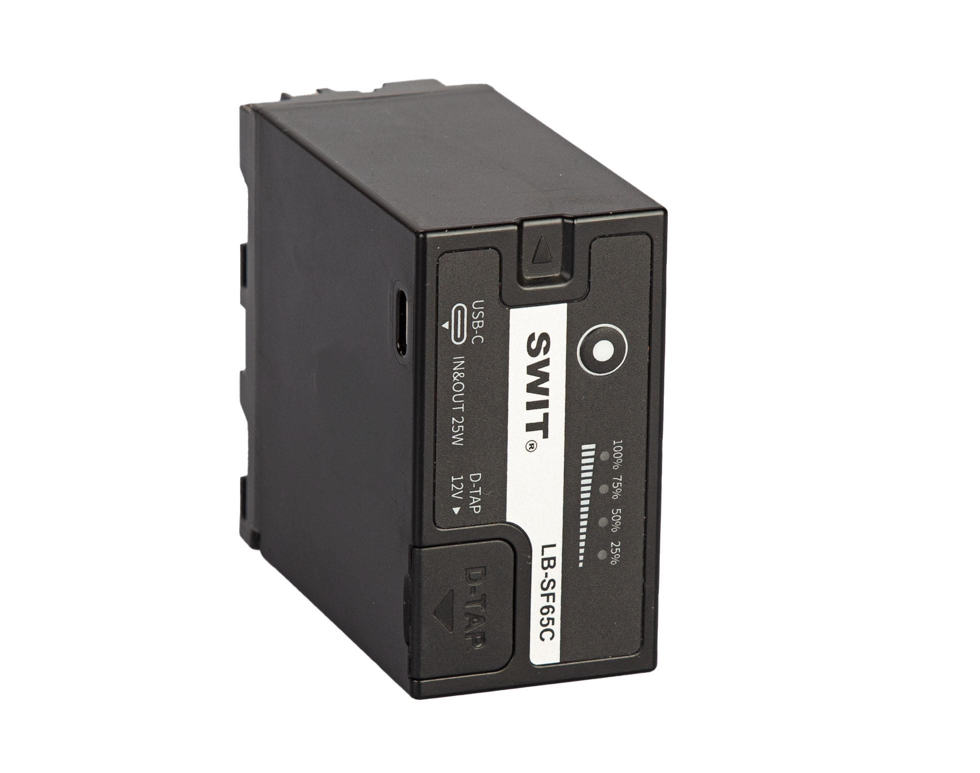La LB-SF65C est une batterie haute capacité de 65 Wh (9,02 Ah), soit une réserve d'énergie supérieure aux modèles NP-F970 standards. Elle se distingue par l'intégration de deux connecteurs révolutionnaires pour ce format : un port D-tap régulé à 12 V et un port USB-C bidirectionnel de 25 W. |